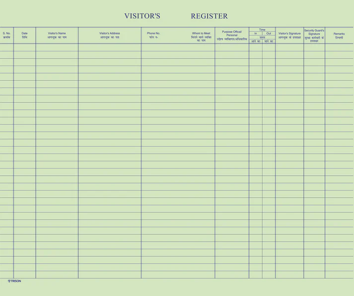 65 GSM green ledger paper| Dimensions: 21.5 x 34 cm